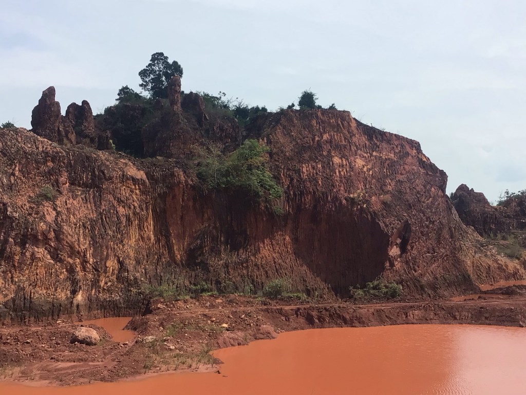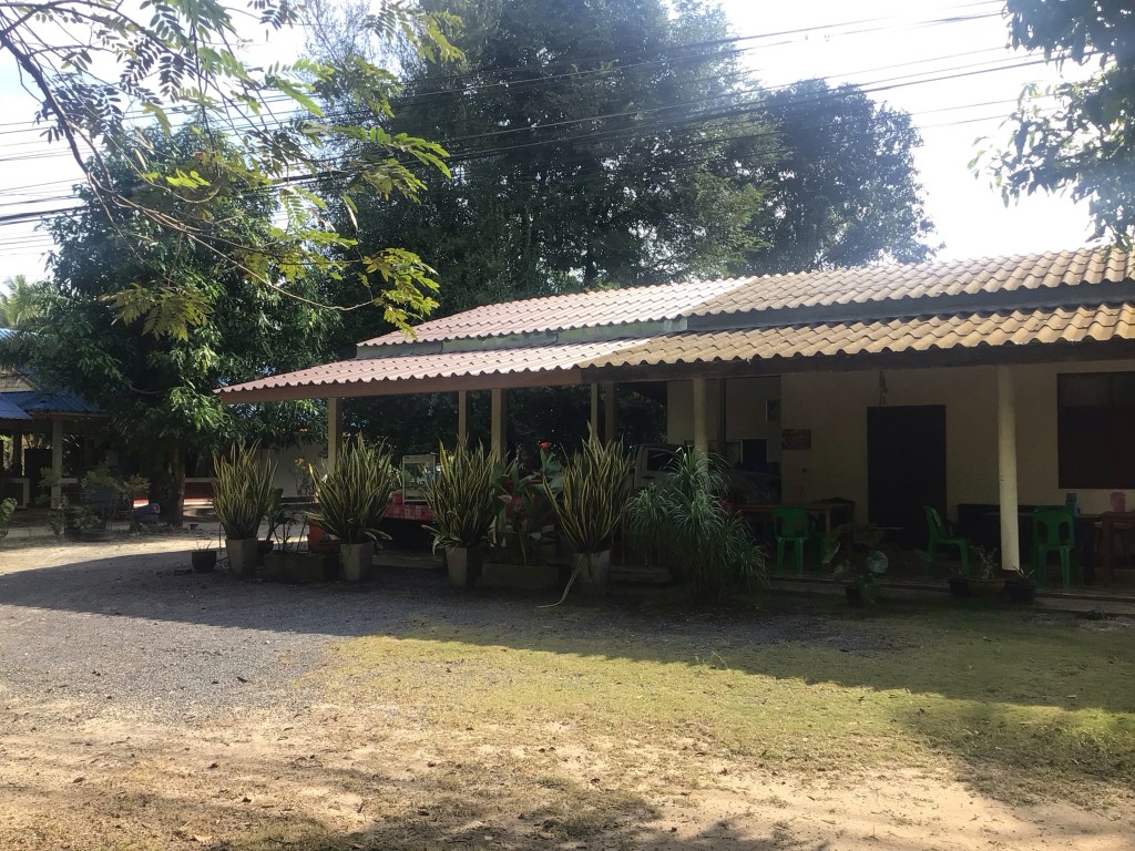 La route devient monotone. Nous trouvons un gargote en bordure de route pour déjeuner. Puis nous repartons par la route 4112 qui descend plein sud vers l’aéroport de Surat Thani. D’anciennes carrières ont été abandonnées après exploitation. Une nouvelle fois, Dame Nature, malgré les meurtrissures, reprend le dessus.