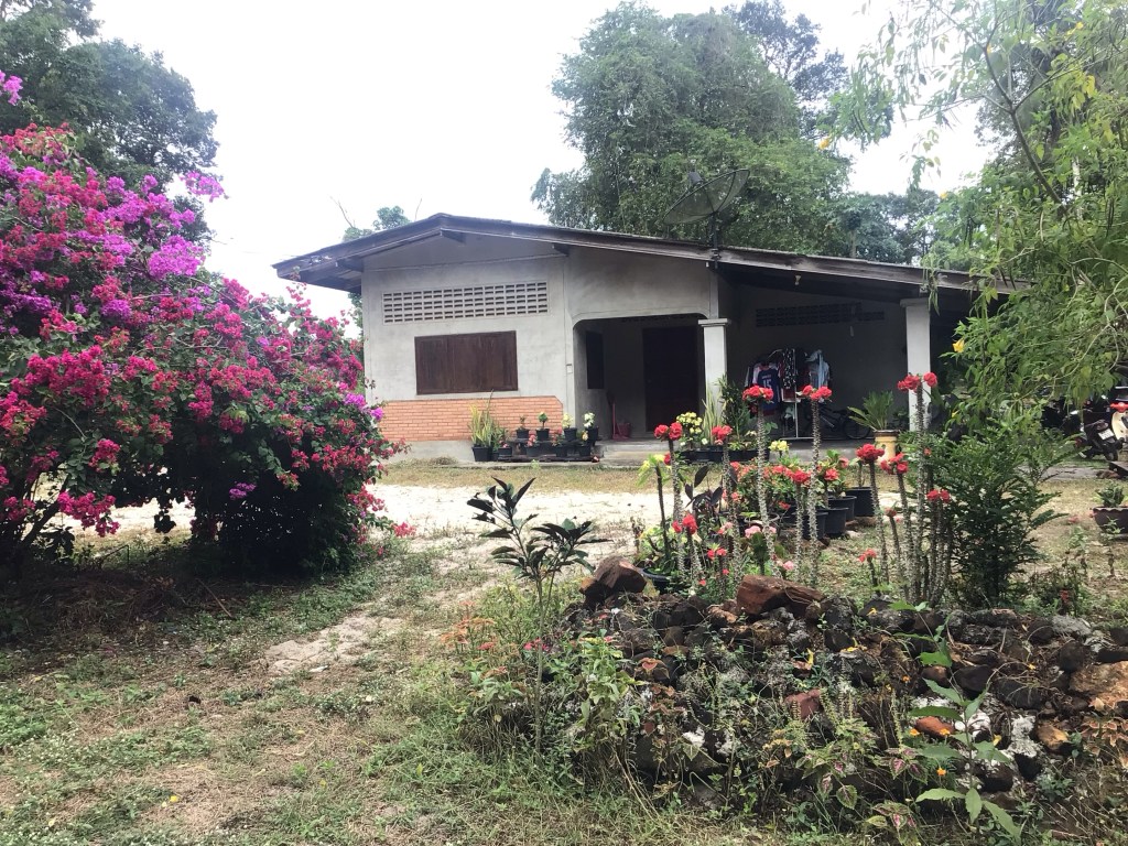Dans ce secteur, la plupart des maisons sont construites en dur. Devant, de beaux massifs de fleurs et de plantes grasses ornent ces maisons. Toutefois, sous la véranda, le linge de maison est toujours suspendu. La culture de l’huile de palme doit rapporter beaucoup plus que la pêche.