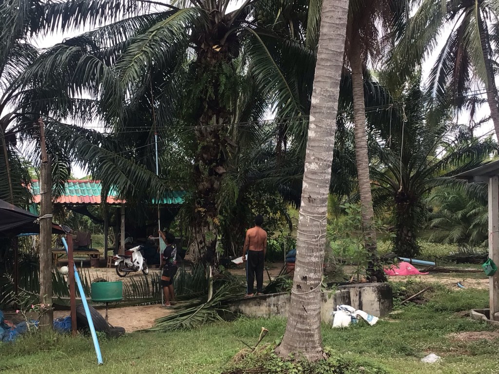 De temps en temps, nous croisons des entrepôts où les enveloppes des noix de coco sont déposées. Nous nous posons la question du recyclage. Apparemment, tout est brûlé sur place. A confirmer …