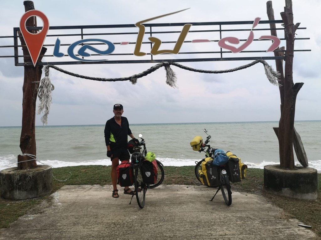 Nous retrouvons l’océan que nous longeons depuis un moment à Ban Pang Pring. Comme au nord, les plages et les terrasses sont désertes. On se demande comment tous ces commerces arrivent à vivre.