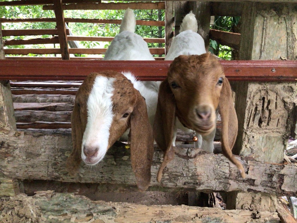 Au fond du parc, se trouve un étang avec une maisonnette pour les amoureux. A côté, deux chevreaux aux long oreilles réclament leur pitance. Cet endroit invite à la méditation et à la zénitude.