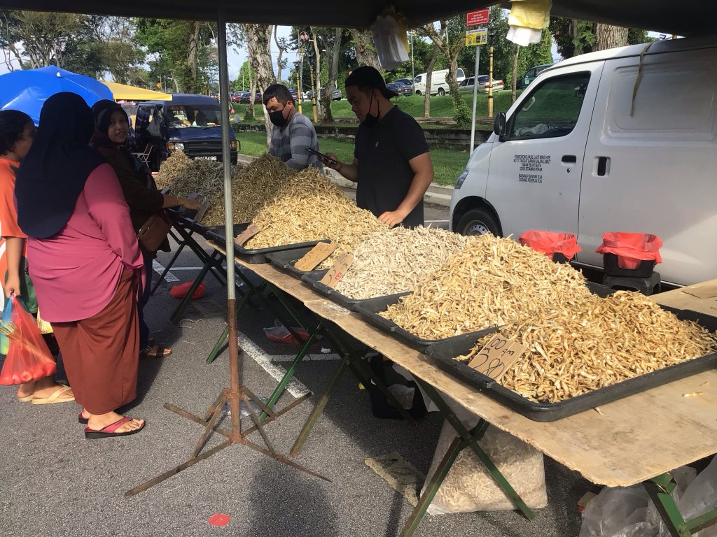 En milieu de matinée, nous traversons la ville de Batu Gajah. C’est jour de marché de plein vent. C’est d’ailleurs le plus grand depuis notre départ. Nico s’arrête acheter une bouteille d’eau au supermarché du coin. C’est jour de course aussi. Le parking est blindé.