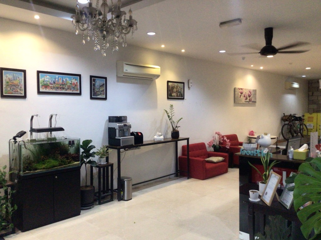 Arrivés en ville sous une chaleur accablante, nous nous posons à l’ombre à la recherche d’un hôtel. J’en dégote un sur Agoda. La chambre avec lits jumeaux et douche, mais sans fenêtre, est bradée 56RM (12€) au lieu de 300RM. Nous y allons direct. C’est un hôtel à la sortie de la ville avec un hall accueillant (aquarium, thé et café offert, …). Je récupère la clé. Nous montons illico dans notre chambre close pour nous doucher et siester. Ensuite, j’ai atelier réparation de ma crevaison puis atelier couture de ma languette de casquette Adidas et de mon cuissard Fox. Alors que je suis en plein boulot, l’orage éclate.