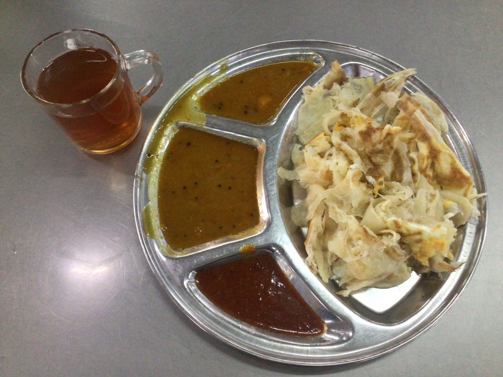 A 7h35, nous sommes installés devant notre roti canai matinal. Ce matin, il est délicieux. Par contre, après que Nico a faille s’étouffer, j’évite la sauce pimentée rouge en bas de mon assiette.