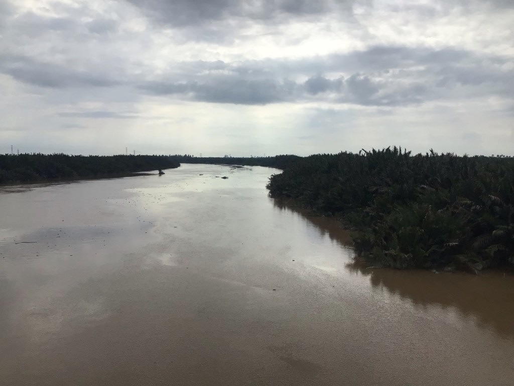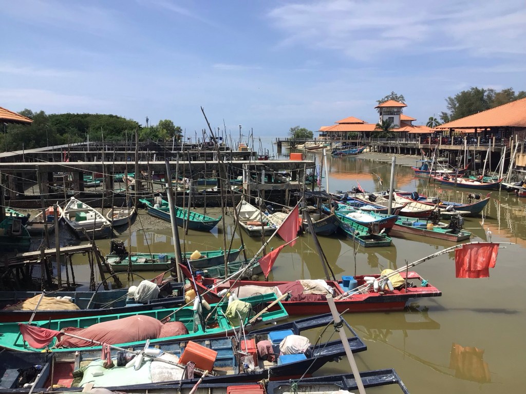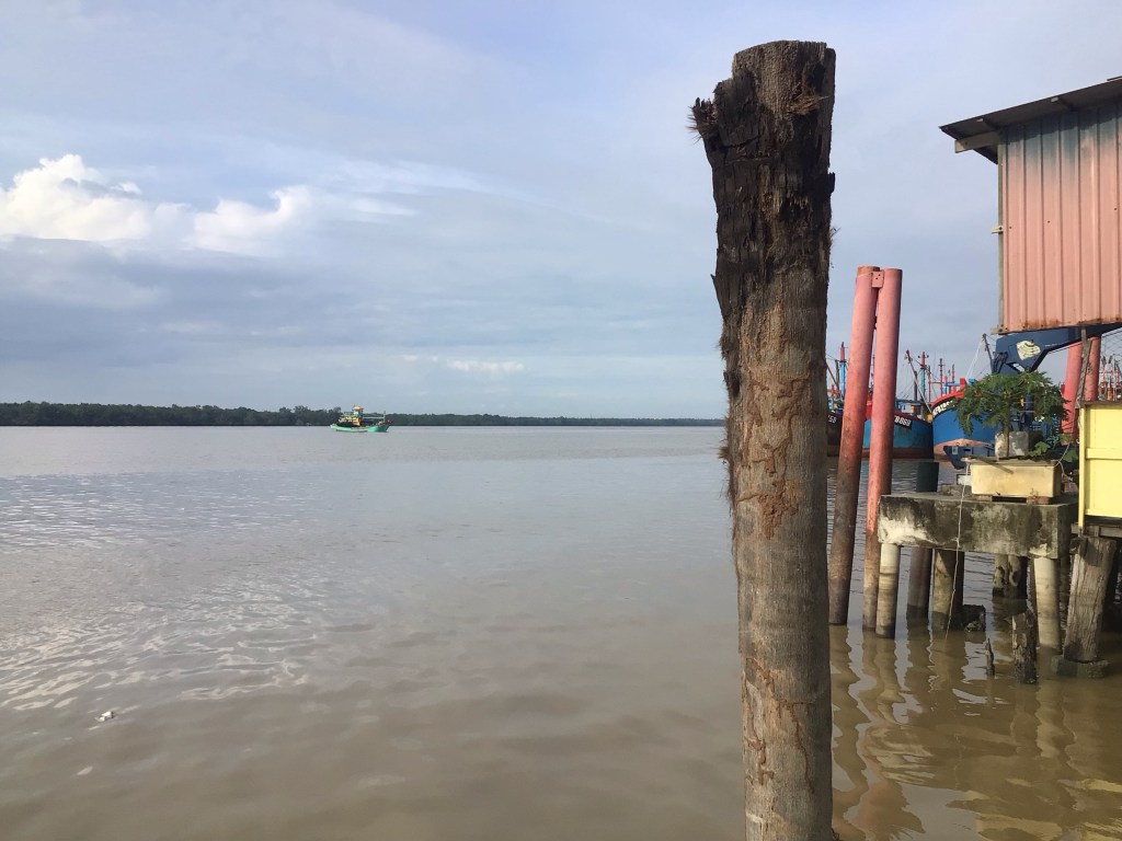 C’est bien le cas. Seuls des bateaux de pêche naviguent sur ce fleuve. Le traversier est à quai. Un quidam nous confirme que « The ferry is destroyed ! ». Demi-tour et retour sur la route 5. Nous allons rouler 45 kms sur cet axe avant de franchir enfin le pont après le village de Kampung Seri Perkasa.