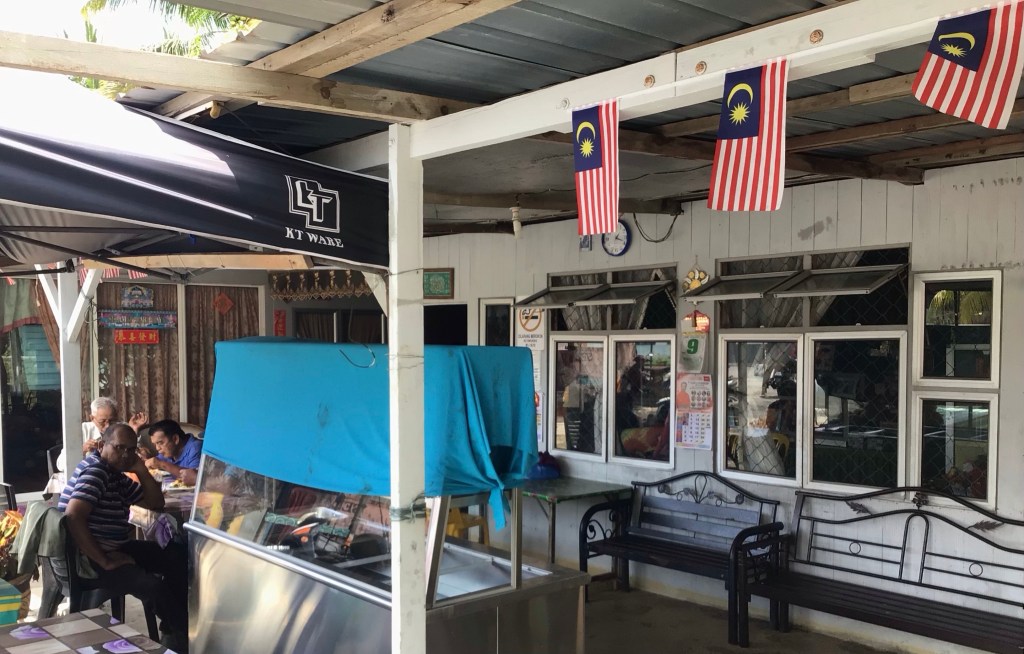Vers 12h30, nous déjeunons à nouveau dans une gargote isolée sur ces cheminements. Il n’y a que 2 tables. La première occupée par des habitués et la nôtre placée dans un courant d’air fort bien venu. La cuisinière, une femme âgée et bien fatiguée, ne parle que malaisien. De toute façon, le choix est restreint. C’est riz-légume vert avec un œuf poché bien pimenté (n’est-ce pas Nico !) ou un morceau de poulet au curry pour moi.