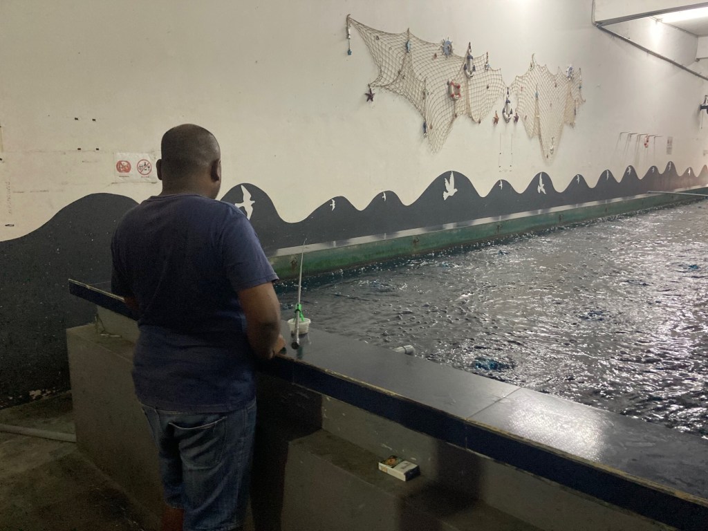 En dessert, nous nous offrons une glace Magnum dans le toujours fidèle 7-Eleven. Alors que nous la dégustons en marchant dans le quartier, je vois au loin arriver un cyclotouriste roulant bon train sur la route principale. Il arrive vers nous. Je reconnais Hughes, l’anglais rencontré avec Ian le N-Z, après notre départ de Bangkok. On se retrouve 1.800 kms plus au sud. Incredible but true ! Nous discutons quelques minutes. Il est plus de 19h30 et il se rend à son hôtel. Nous retournons également à notre hôtel après être entré dans un magasin, sis juste à côté, où les clients pêchent leurs crevettes. Incroyable également.