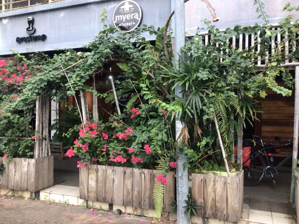 Je profite du balcon pour me raser les poils des pattes. L’épilation attendra mon retour. Ensuite, nous prenons nos vélos pour aller dîner à quelques encâblures. Le restau est tenu par des jeunes. Le cadre est moderne et la musique branchée. Nous avons même droit à une chanteuse française inconnue. Nous rentrons juste avant le coucher du soleil.