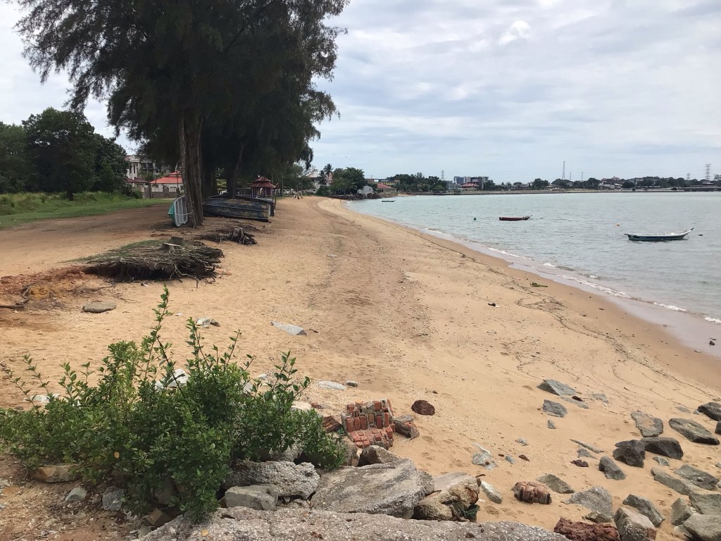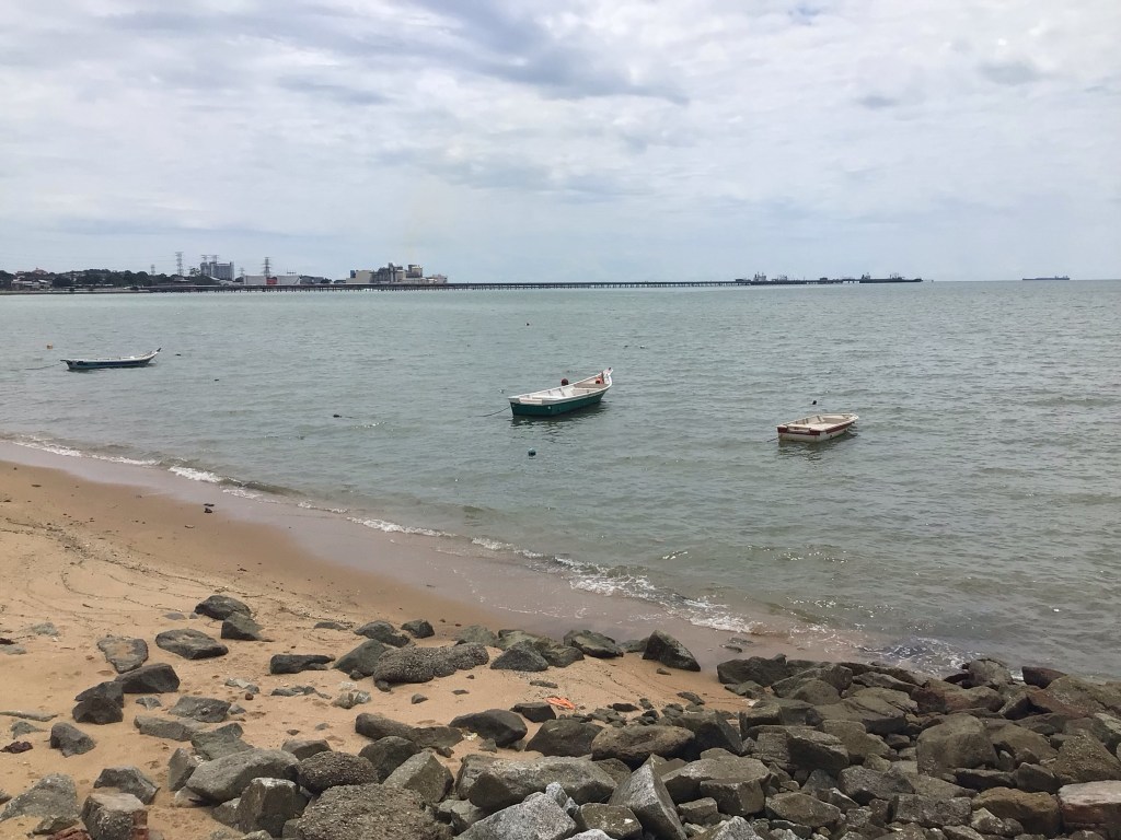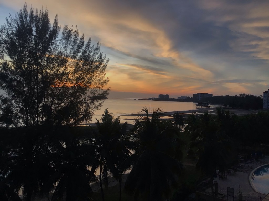 Nous terminons cette étape un peu plus loin à Port Dickson, station balnéaire aux grands hôtels et belles plages. C’est d’ailleurs un appartement dans un de ces complexes hôteliers que j’ai réservé sur Agoda. Mais, une nouvelle fois, trouver ce fameux appartement va s’avérer très compliqué voire impossible. Les proprios m’avaient donné jusqu’à 15h pour leur répondre alors que nous étions sur la route. J’ai répondu vers 15h10. Depuis aucune nouvelle. Heureusement, un autre proprio croisé pendant nos recherches nous propose le sien au même prix. Vendu ! Nous avons même un balcon avec vue sur mer. Mais pas de wi-fi. On ne peut pas tout avoir non plus.