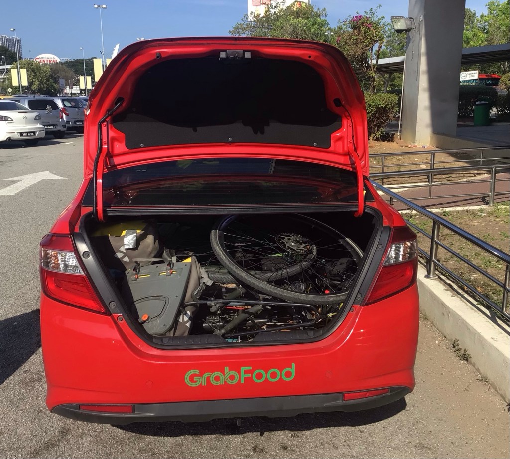 A 8h00, nous partons déjeuner dans notre repère hindou. A 8h30, nous prenons la direction de la gare routière Melaka Sentral. Une fois arrivés sur place, nous faisons la queue un bon moment avant d’arriver devant le guichet. Après avoir posé la question fatidique, le guichetier nous envoie bouler de façon fort peu aimable. Le bus de 9h30 est complet. Les autres n’acceptent pas de vélo vu que nous sommes en période de vacances. Bon. Nous nous posons sur un banc pour essayer de louer une voiture avec dépôt à Kuantan. J’ai beau modifier les jours et les heures, aucune voiture de location n’est disponible ou n’accepte ce service. Comme il n’y a pas de train, la dernière solution qui s’offre à nous (excepté prendre l’avion évidemment) est de réserver un Grab.