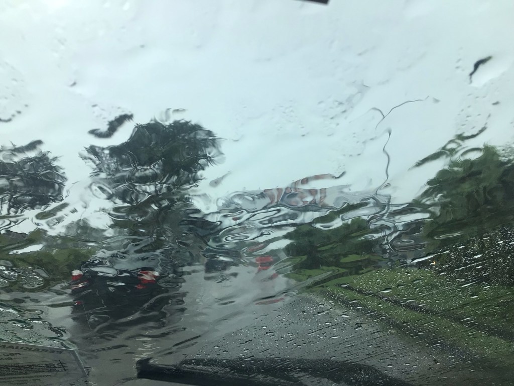 Je vous le concède : nous allons quand même plus vite qu’à vélo ! Nous faisons une halte carburant et pause pipi. J’en profite pour manger un cookie accompagné d’un café glacé Nescafé en boîte. Il commence à faire faim. La route reprend aussi longue et monotone. Pour corser l’affaire, un gros orage éclate. Le trafic s’intensifie. Nous approchons de la ville. Nous y arrivons sous le déluge.