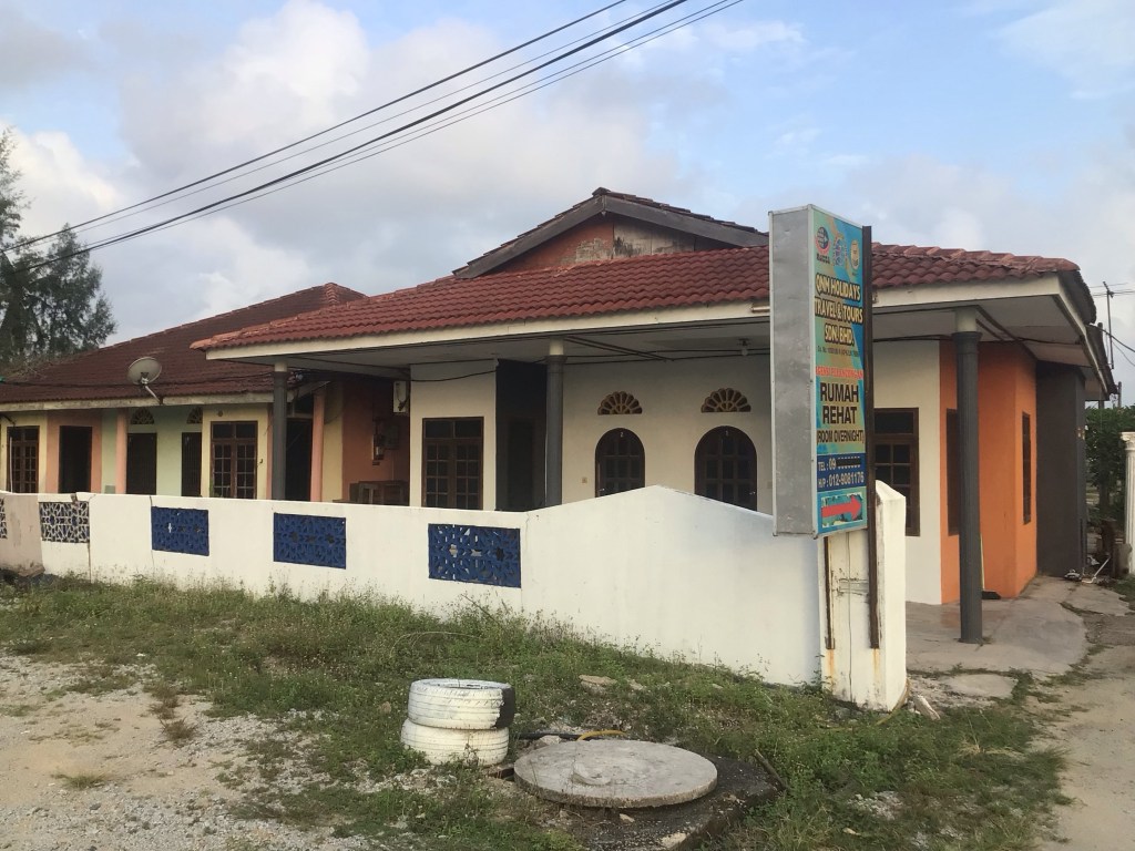 Vers 16h00, nous arrivons enfin à destination. Un homme à scooter nous propose de le suivre et nous emmène dans une agence de voyage. Nous avons en effet prévu de nous rendre sur l’île de Perhentian demain. Nous passons un moment à étudier les différentes possibilités entre les horaires des ferries, les activités de snorkeling (nage avec masque et tuba pour admirer la faune marine) et de walking (chemin côtier faisant le tour de l’île). Puis il nous faut trouver un hôtel pour la nuit. Et enfin, the last but not the least, aller dîner. A 19h30, nous réintégrons nos pénates (La Wood) dans un bel endroit à l’espace de vie très spacieux, à la wifi qui fonctionne et tenu par 3 jeunes femmes très arrangeantes. Demain, nous pourrons laisser nos vélos et nos sacoches puis les récupérer vendredi à notre retour de notre séjour sur l’île.