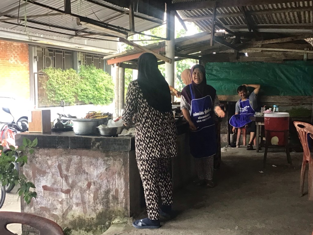 Vers midi, nous arrivons aux portes du village de Bang Satia. En ce samedi matin, c’est jour de marché comme à Blagnac. Là-bas, c’est Carmina qui s’y colle avec mon pote David pour l’aider. Ici, c’est quelque peu boueux après le déluge qui a dû tomber. Mais cela n’a vraiment pas l’air de déranger grand monde. Nous faisons le tour du village pour trouver une gargotte mais sans succès. Nous revenons donc au marché.