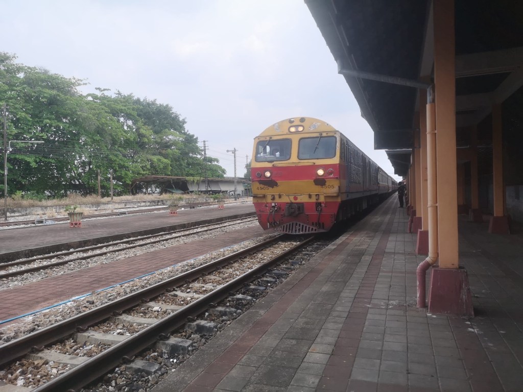Vers 19h15, nous arrivons enfin à destination. Nous avons remonté tout le train et traversé de nombreux wagons beaucoup plus confortables (Class 1 & 2); notamment de nombreux wagons-couchettes climatisés pour les passagers qui se rendent à Bangkok. Nous déchargeons les vélos. Je branche mon GPS Google Maps en mode piéton pour rejoindre notre hôtel distant d’un kilomètre environ de la gare. Nous y arrivons. Alors que je dis à Nico que c’est quand beaucoup moins compliqué qu’en Malaisie, un nouveau sketch commence. Bien que j’ai réservé, payé, confirmé notre arrivée par mail et message, la famille au complet à la réception va mettre une bonne demi-heure avant de comprendre que la chambre est payée et de finir par nous donner les clés d’une chambre. Une douche rapide et on file dîner dans la gargote la plus proche. Il est 21h00 quand on rentre dans notre superbe chambrette. Fin de cette nouvelle longue journée multimodale !