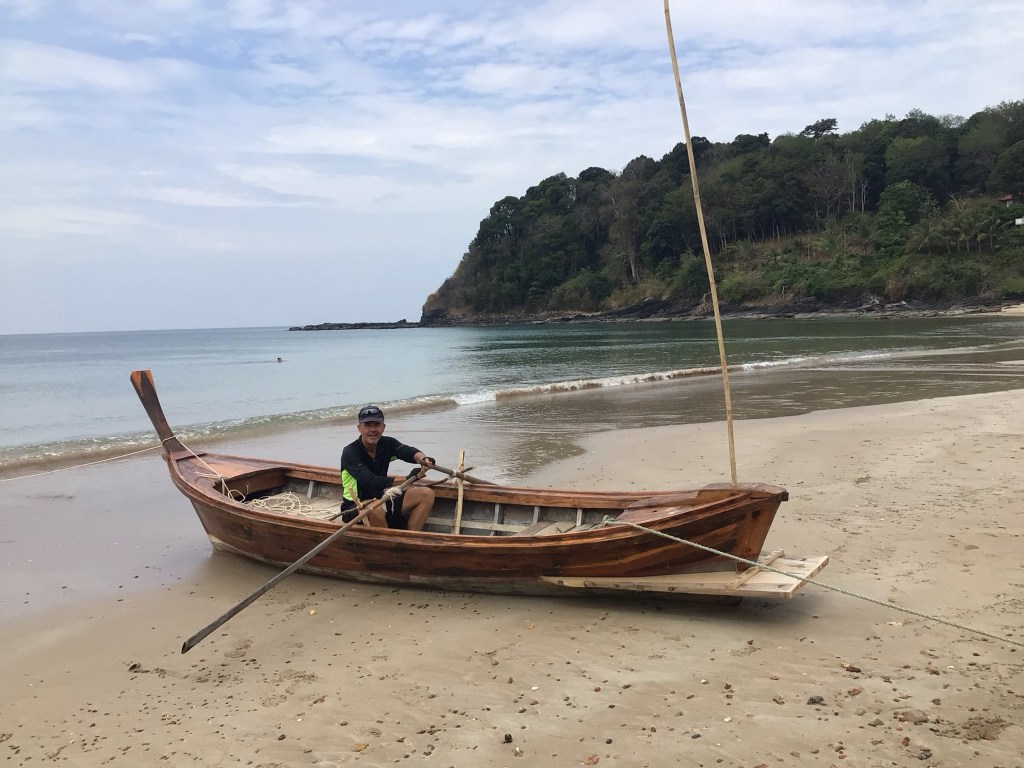 Des scooters et des bétaillères chargées de touristes nous doublent. Ils doivent nous prendre pour de grands malades. Nous galèrons grave. Je dirais même plus : nous ramons. Nouvel arrêt dans la crique de Klong Jark Beach.