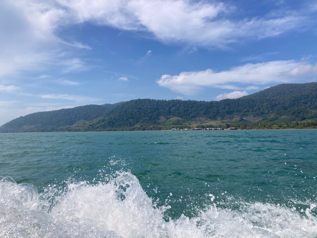 Nous doublons des îlots en forme de pains de sucre pour nous rendre sur Koh Chuek. Les passagers tribord ont bien dégusté lors de cette première traversée d’une quarantaine de minutes.