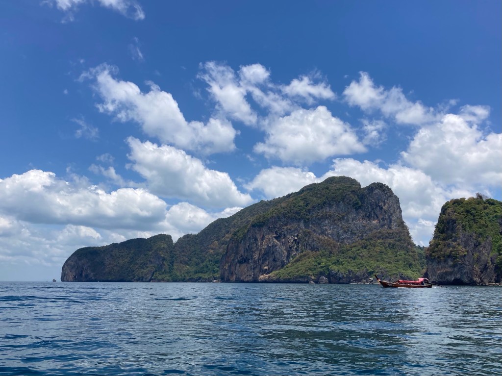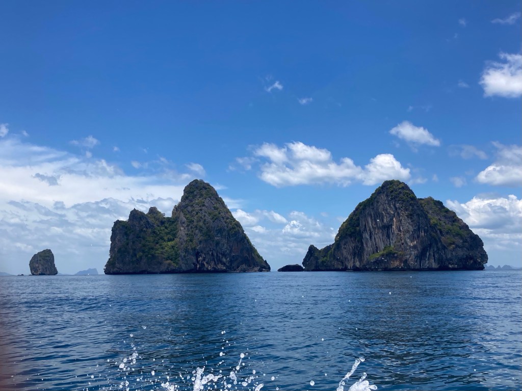 Il est bientôt 13h. Nous nous dirigeons maintenant vers la 4è et dernière île, celle de Koh Ngai. Auparavant, nous croisons à nouveau de superbes pains de sucre perdus dans cette immensité bleu de mer et de ciel.