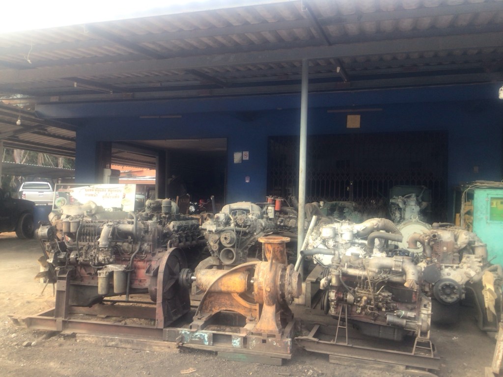 Ce matin, je suis réveillé par Nico qui me quitte à 6h30 du mat’. Il va rejoindre le centre-ville et essayer de trouver un pick-up pour l’emmener à la station de train de Phumpin. De mon côté je me lève vers 7h00. Puis le patron m’invite à prendre un café accompagné d’un morceau de gâteau. Et, alors que je n’ai pas rendu la clé, il me rembourse les 100THB de caution. Il doit avoir quelque chose à se faire pardonner. Je quitte cette hôtel/restau/garage avec ses nombreux moteurs en devanture. Cela me rappelle mon père, diéséliste de métier, bien évidemment.