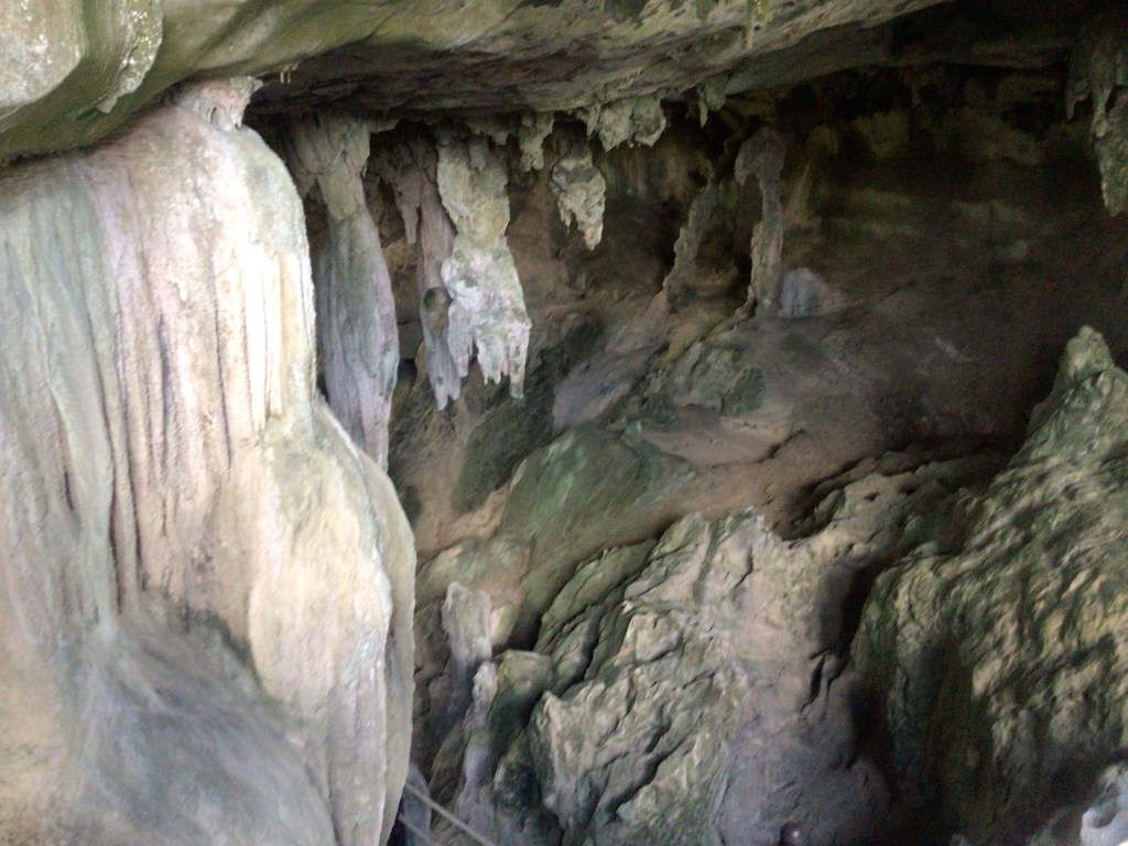 La grotte en elle-même est assez grande. Je peux y admirer de nombreuses stalactites, stalagmites et draperies.