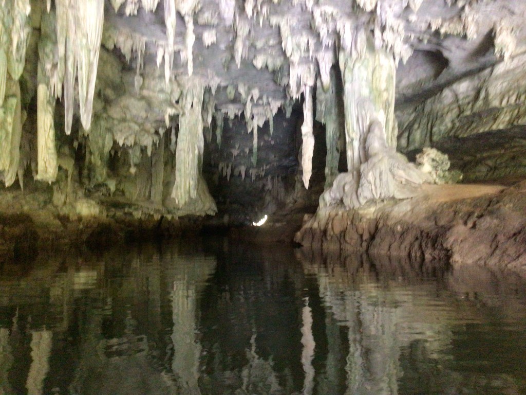 Les stalactites et les draperies se reflètent sur l’eau. C’est tout simplement splendide. Les mots me manquent pour décrire les sentiments que je ressens devant un tel spectacle. En effet, contrairement aux autres sites merveilleux déjà visités, je suis seul. Et ceci n’a pas de prix.