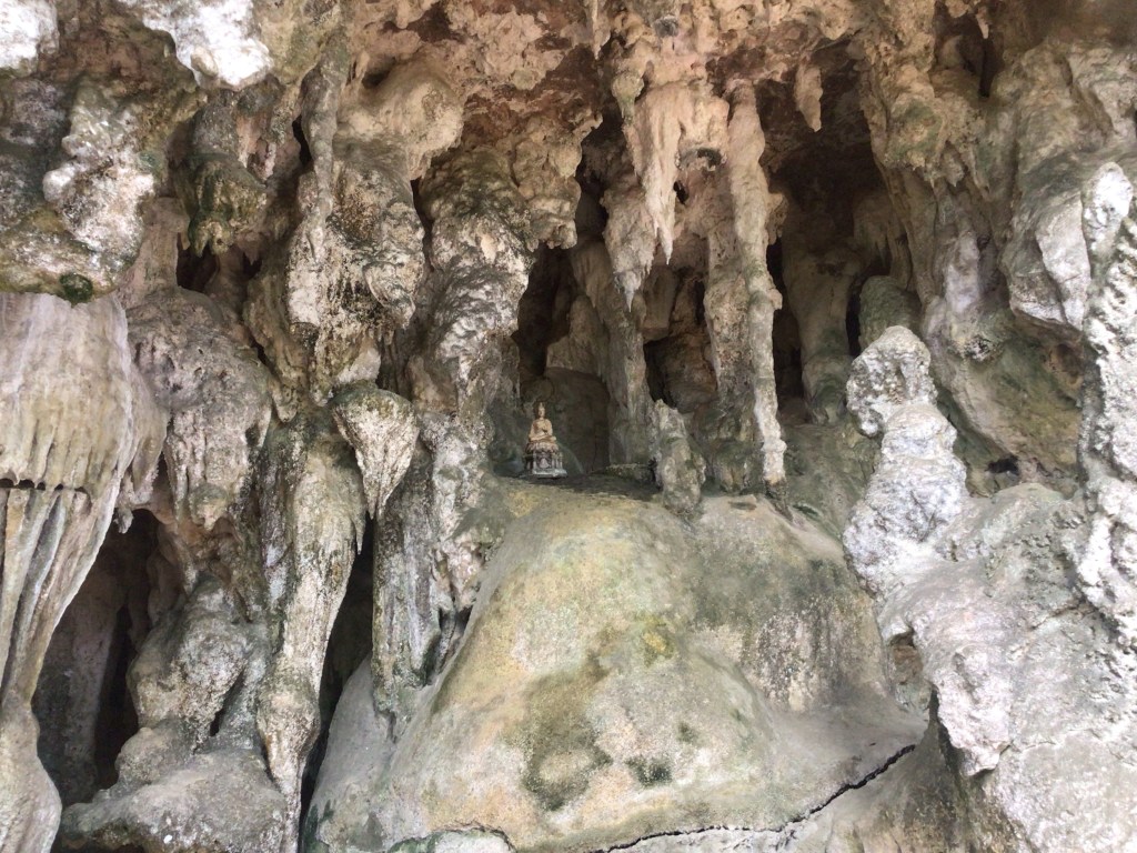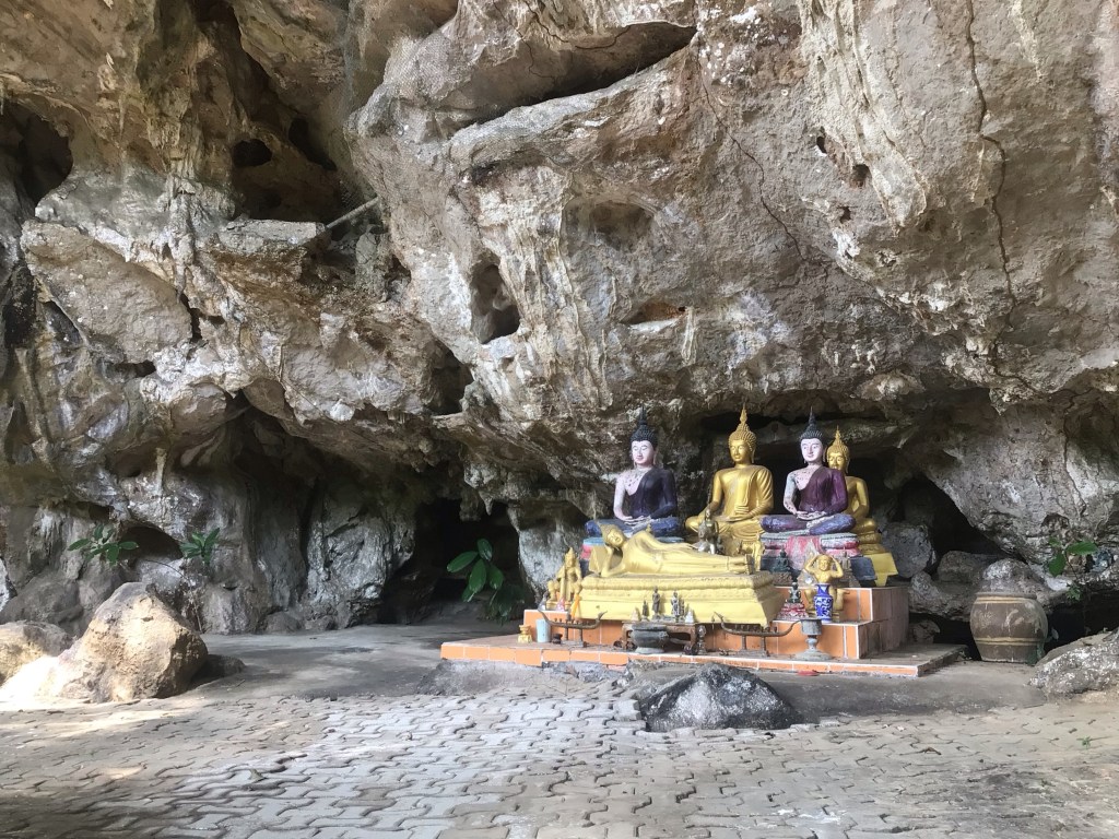 En observant cette paroi rocheuse, je découvre une statuette de bouddha assis tranquille dans une niche. Je ne me lasse pas de la sérénité et de la zénitude de tels endroits. Avant de quitter ce lieu, je dépose un don. Puis je remercie ce moine pour son accueil. Il me fait signe que lui et moi sommes semblables (sem sem). Puis me souhaite un bon chemin.
