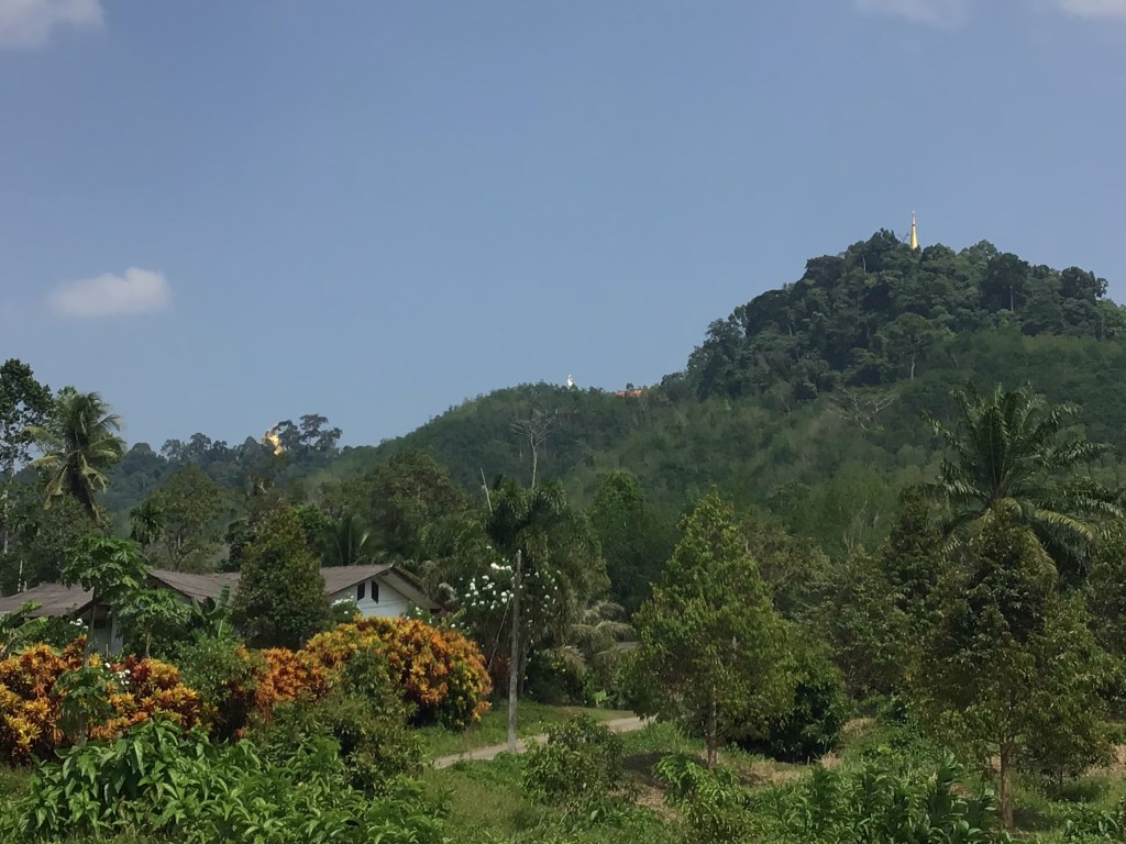 Ce couple est thaïlandais de Bangkok. Ils rentrent dans la capitale après avoir séjourné ici où ils ont de la famille. Nous échangeons en anglais pendant notre repas. En partant, ils me souhaitent un beau voyage et m’offrent le repas. Cela faisait longtemps. Décidément quelle incroyable matinée … J’emprunte ensuite la route 4108 qui passe entre 2 massifs montagneux. Comme dans « Où est Charlie ?», je vous vite à trouver les temples érigés dans la forêt.