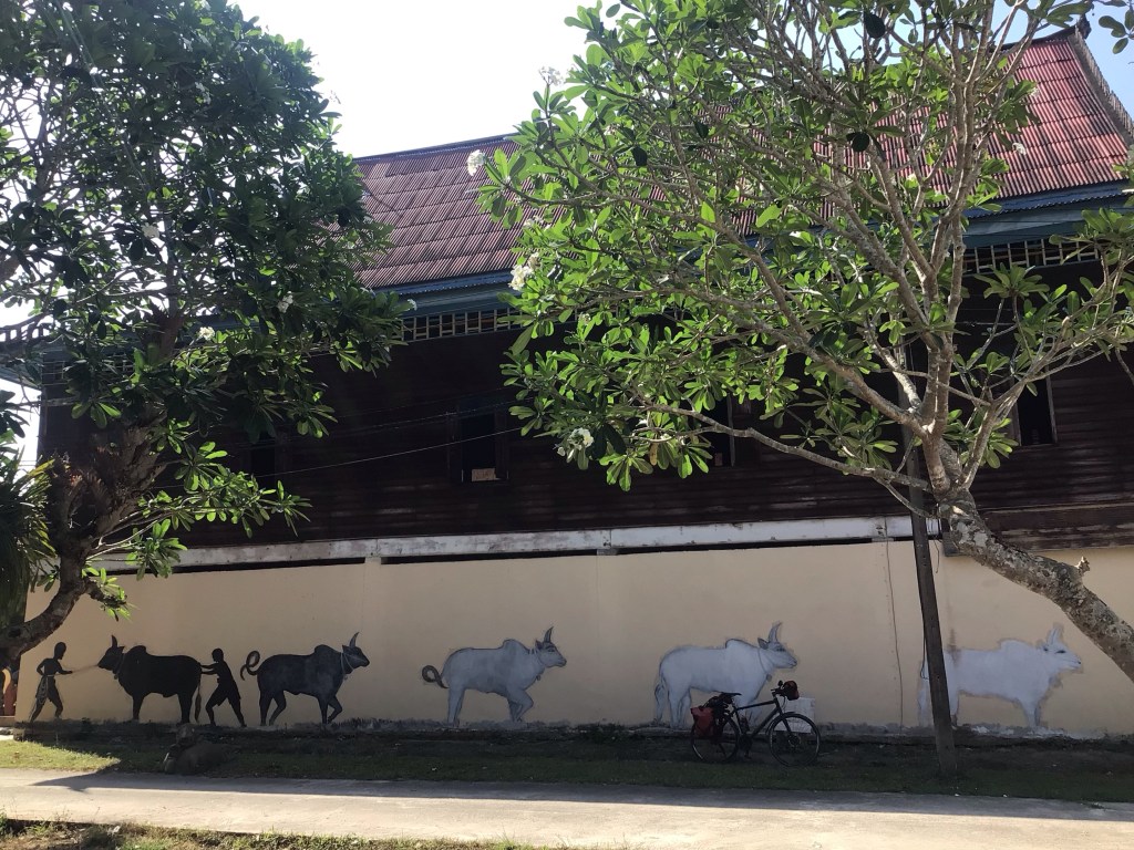 Ce n’est pas évident de reprendre la route après un tel spectacle. Mais avant cela je réserve un hébergement dans la ville de Phunphin où Nico a pris son train hier. Il me reste une trentaine de kilomètres à parcourir. La chaleur est étouffante. Heureusement que le fleuve apporte un souffle de fraîcheur.