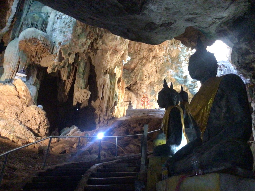 Alors que je comate grave, je suis réveillé par les remous d’énormes poissons chats qui se jettent sur de la nourriture donnée par un couple. Ils auraient quand même pu faire ça ailleurs. Je monte ensuite visiter ce temple grotte.