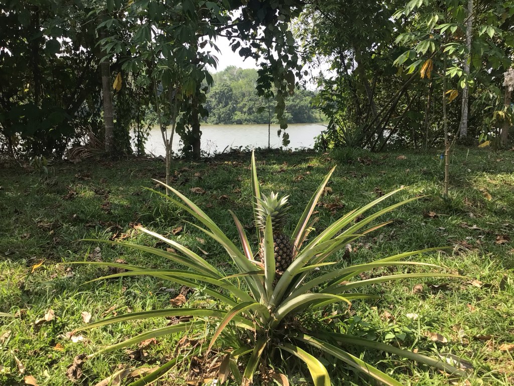 La végétation est toujours aussi luxuriante. Je m’arrête à nouveau pour prendre en photo cet ananas que j’aimerais bien me farcir. Il m’en reste juste un quart dans ma sacoche. Ce sera ma récompense à l’arrivée.