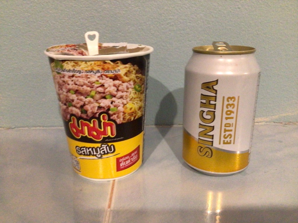 A cette vitesse, j’arrive avant 16h à destination. J’en profite pour appeler mes amis de L’Arche. Cela faisait un bail. Par contre, je suis dans la pampa en bord de rivière. Il n’y a aucun restau. Seulement un commerce très peu achalandé. Ce soir, ce sera donc des nouilles lyophilisées accompagnées d’une Singha en guise de dîner.
