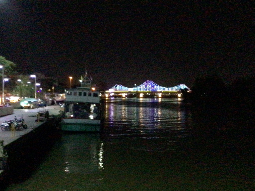 Je peux rejoindre le ferry. J’ai même de la marge pour m’acheter une bière Chang. Il y a un peu plus de monde que ce matin dont pas mal de jeunes occidentaux. Je vais pouvoir tester mon nouveau joujou. Quel plaisir de pouvoir saisir ce texte sans avoir à articuler comme un couillon devant mon clavier. Il est 22h30. Le ferry largue les amarres et sort de Surat Thani par ce long fleuve que nous avions déjà emprunté avec Nico le 26 janvier pour nous rendre sur l’île de Koh Pha-Ngan.