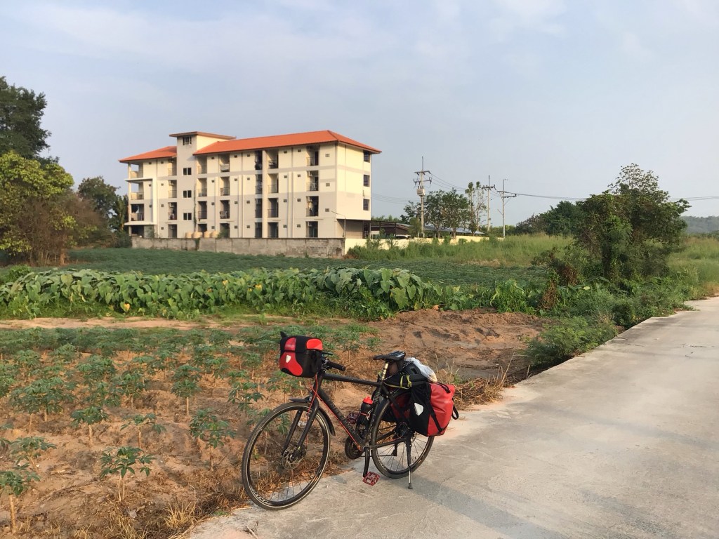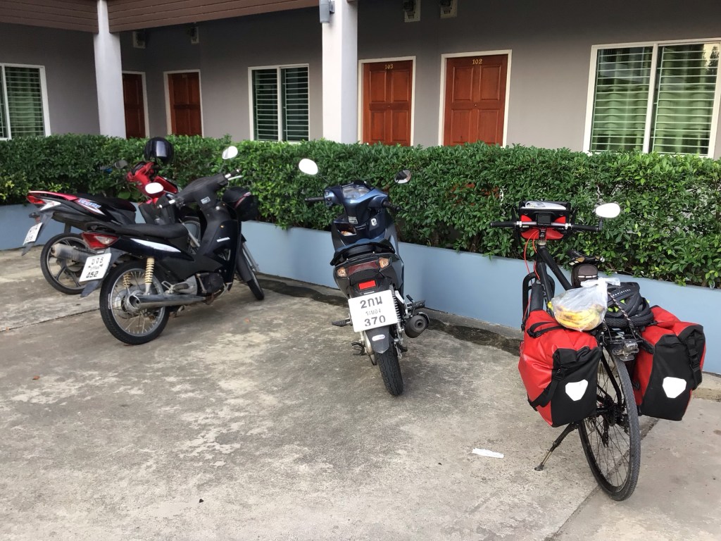 Vers 15h30, je commence à sortir mes radars. Une première tentative en bord de mer échoue (location à la semaine uniquement). La seconde dans les terres également. Il s’agit d’une location non répertoriée sur les sites Agoda ou Booking dont l’enseigne écrite en Thaï peut se lire Season. La proprio tient également une boutique. Elle loue plusieurs petits bungalows et m’en demande 500THB. Comme il n’y a personne, je lui en propose 400, somme qui représente ma barrière symbolique des 10€. Mais, comme une fois précédente, elle préfère 0 que 400 ! La troisième tentative échoue également par absence des proprios (ouvert 6AM-9AM, 6PM-9PM).