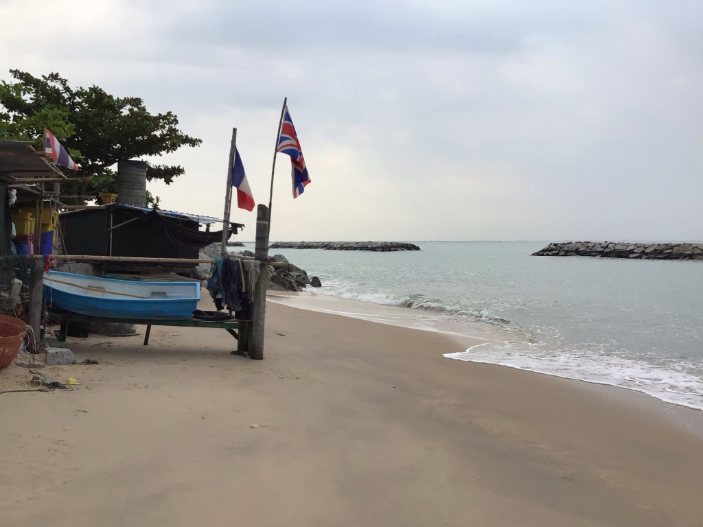 Je poursuis ma route, en empruntant une belle piste cyclable, jusqu’au bout de la langue de terre de cette belle station balnéaire de Rayong. De petites baies sablonneuses, protégées par des brises-vagues, invitent à la chaise longue.