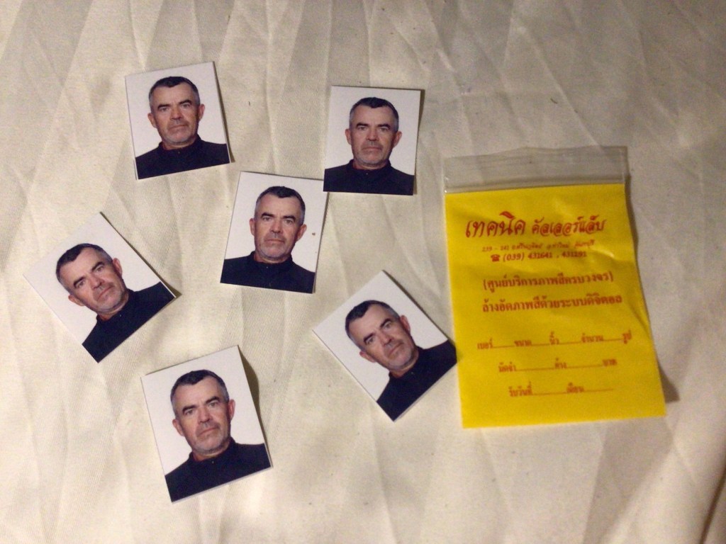 Je file bon train vent dans le dos. En traversant une bourgade, j’aperçois un magasin de photos sur ma gauche. Je pile. Un vieux monsieur aux doigts biscornus se tient derrière son ordinateur. Je lui demande s’il peut me faire des photos d’identité. Enfin lui demander est un bien grand mot vu qu’il ne parle ni français, ni anglais. En fait, je lui montre ma photo sur mon passeport en disant Cambodia et Visa. Effectivement, en lisant le post FB de Nico, j’ai vu qu’il avait eu un souci de photo pour son visa. « Merci pour l’info Nico ! ».