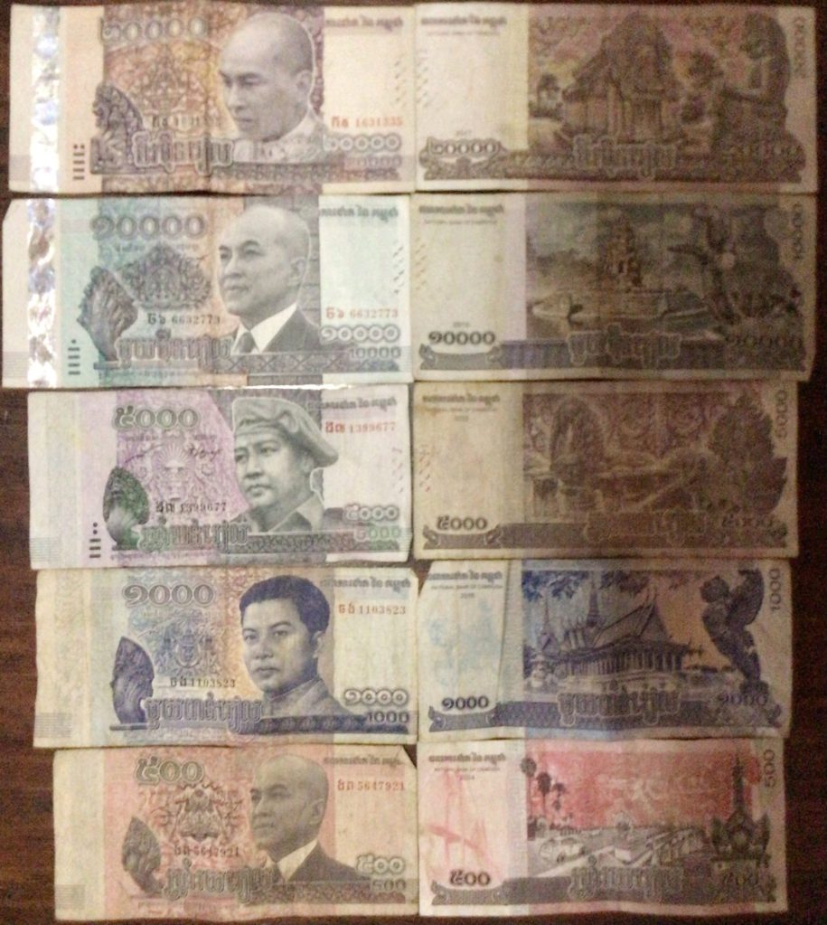 Comme j’ai éclaté un bifton de 50$, je me suis amusé à faire une présentation des billets cambodgiens, comme déjà fait dans d’autres pays.