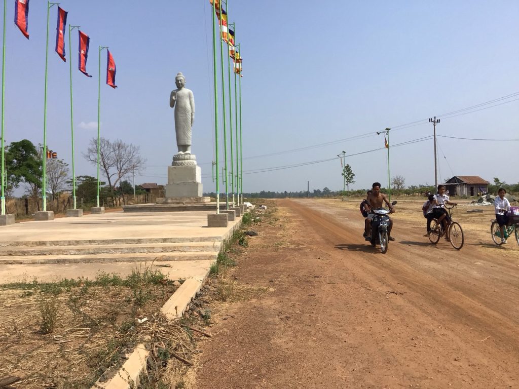En milieu de matinée, j’arrive dans la bourgade de Kuleaen Tboung. C’est déjà la sortie des classes. Comme souvent, les jeunes filles rentrent à vélo, les ados à scooter et les autres avec un des parents à 1, 2 ou 3 sur le scooter.