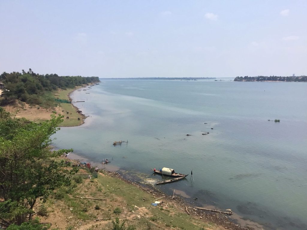J’avance tel un automate pédalant dans le néant. Heureusement, j’arrive sur ce gigantesque fleuve qu’est le Mékong. Je le franchis par un pont qui l’enjambe avant d’arriver à destination. Des buffles s’y baignent. D’autres paissent tranquillement sur la rive verdoyante.