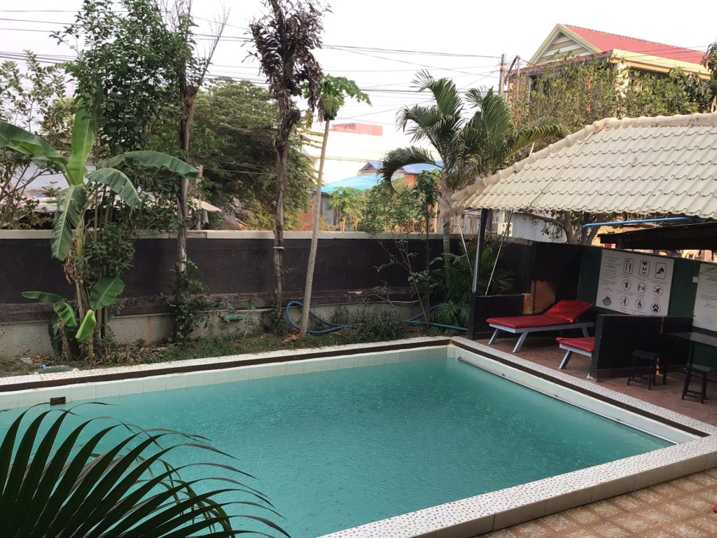 Après avoir visité 2 guesthouse et un hôtel trop onéreux, je me décide pour un 4ème situé à l’écart du centre. Je prends à nouveau une chambre avec ventilo. Mais comme la chambre est petite et borgne (ben oui, le monde n’est pas parfait !), cela suffit amplement. De plus, le prix de 7$ est raisonnable vu la qualité de la prestation. C’est parfait. Je me pose, me douche, me couche. En milieu d’après-midi, je suis d’attaque pour ma 2ème journée. Alors que je suis au téléphone avec ma puce et qu’aucun signe précurseur ne m’y avait préparé, une pluie diluvienne s’abat sur la ville. La piscine va se remplir facilement …