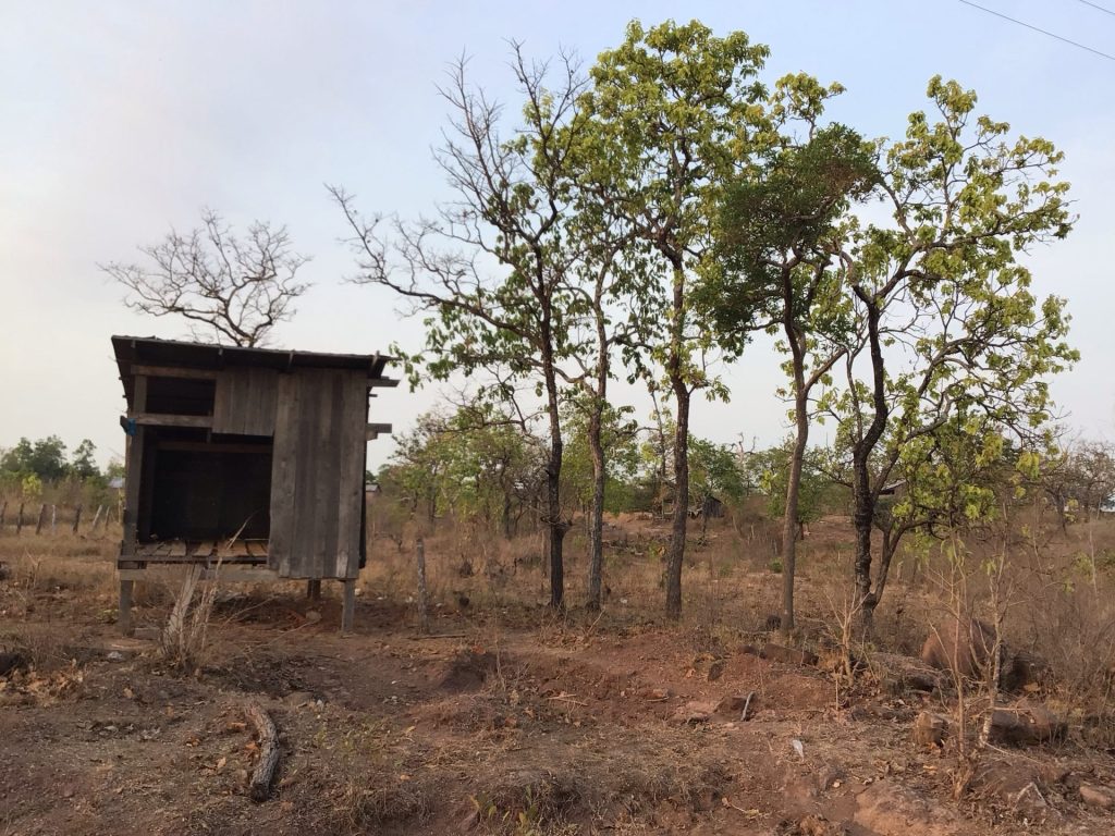 Je reprends donc ma piste laissée hier soir. Je croise quelques gamin.es à pieds, à vélo ou à scooter qui se rendent à l’école. A 3 reprises, j’emprunte une vieille passerelle en bois traversant une rivière presque à sec alors que de lourds travaux de construction de passerelle en dur sont en cours. J’imagine, que, pendant la saison des pluies, ces passerelles en bois doivent souffrir. Et, sans elles, les villages se retrouvent complètement isolés.