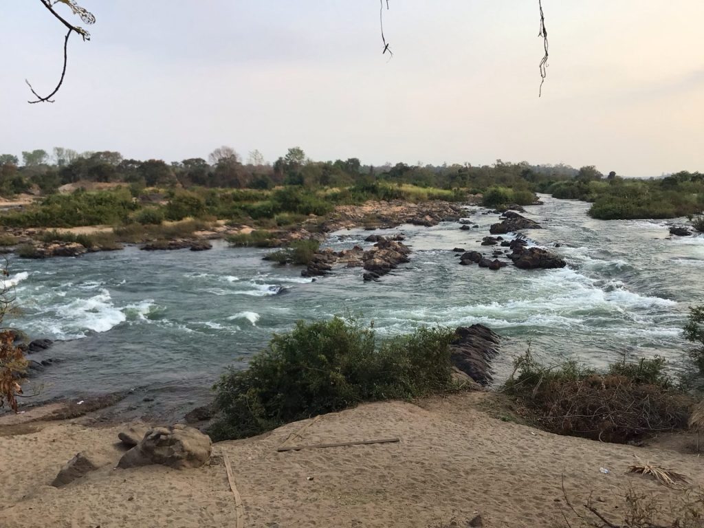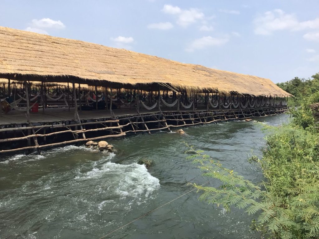 Je retrouve les Kampong Phnow Rapids qui se trouvent juste à côté de mon bivouac improvisé. J’aurais pu dormir dans une des 2 cabanes de cet Eco Tourism Village mais le bruit des rapides et la crainte des moustiques m’en a dissuadé.