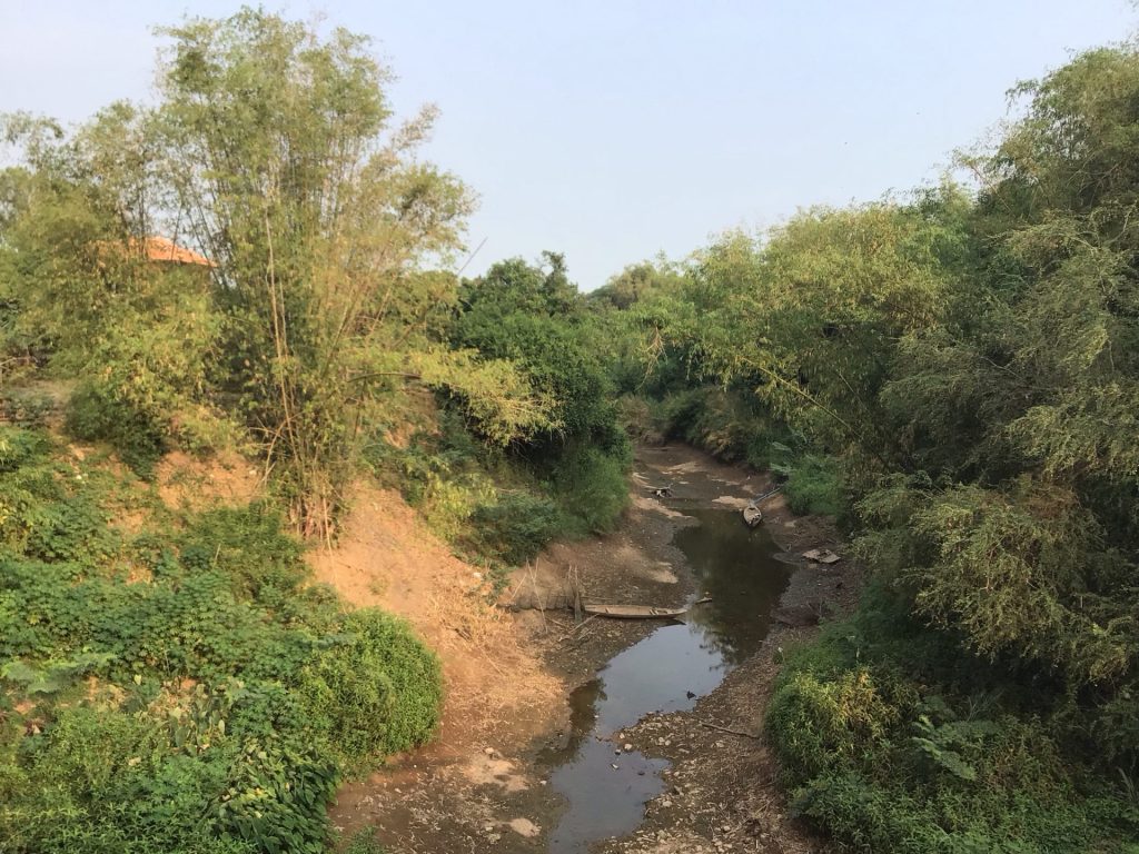 J’enjambe plusieurs bras de rivière presque à sec. Les ponts sont construits vraiment au-dessus du lit de la rivière. Vu comment c’est raviné, j’imagine la force de l’eau à la saison des pluies. Ce doit être impressionnant.