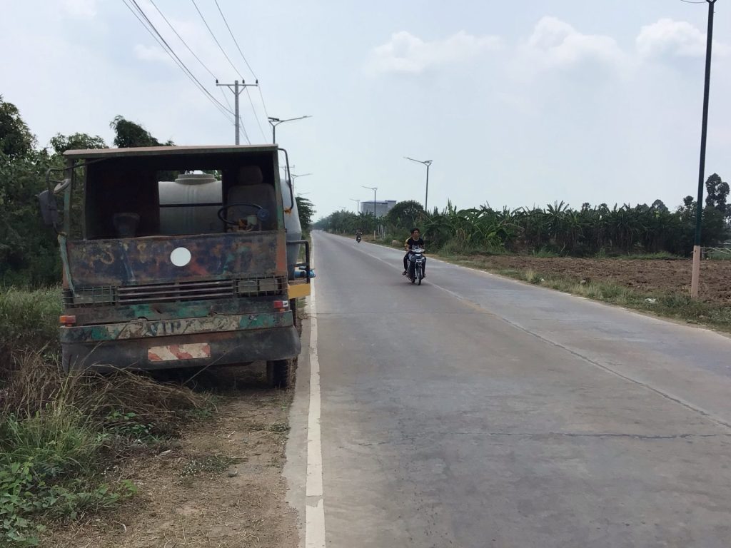 De ce côté, la National Road 381 est beaucoup plus belle. C’est en fait une route bétonnée bien lisse et bien roulante. De plus, l’éclairage y est installé. Je me rapproche de la capitale et les infrastructures s’améliorent. Même si le camion sans pare-brise baigne dans son jus d’époque. D’ailleurs, les ponts à une seule voie de circulation, ce qui est parfois limite pour croiser un camion, font place à des ponts numérotés à double-voie de circulation avec bande pour les cycles motorisés ou non.