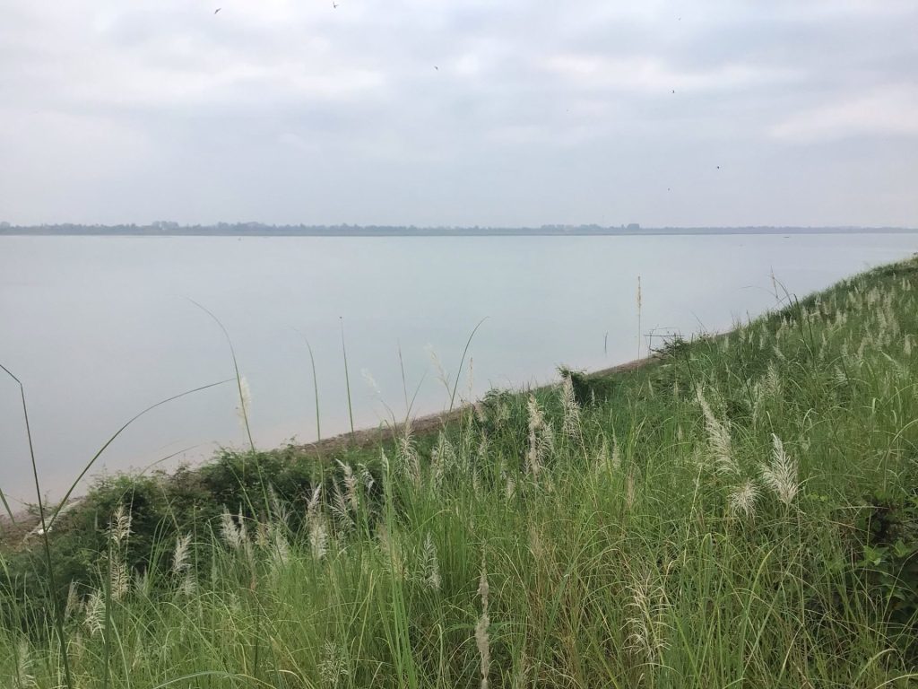 Alors que je circule toujours sur ma charmante petite route bétonnée, mon regard est attiré cette fois par un magnifique champ de nénuphars qui s’étend de ce coté du fleuve alors que les tours se trouvent sur l’autre rive.