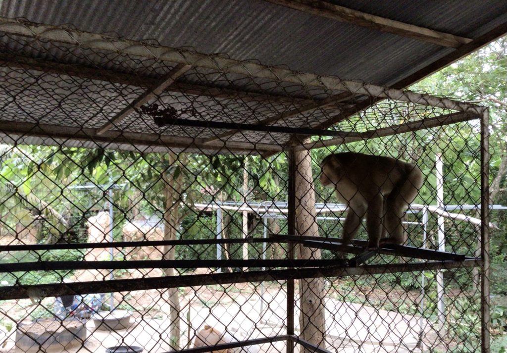 Réveillé au lever du jour par un sacré boucan malgré mes boucles Quiès, je sors voir ce qui se passe. Ce sont 2 macaques, que je n’avais pas vu hier, qui se jettent contre les grilles de leur cage. Ils en ont après un chien apparemment. Et, comme la cage donne sur ma salle de bain, cela fait un sacré raffut. J’attendrai qu’ils soient calmés, et moi un peu plus réveillé, pour essayer d’en prendre un en photo.