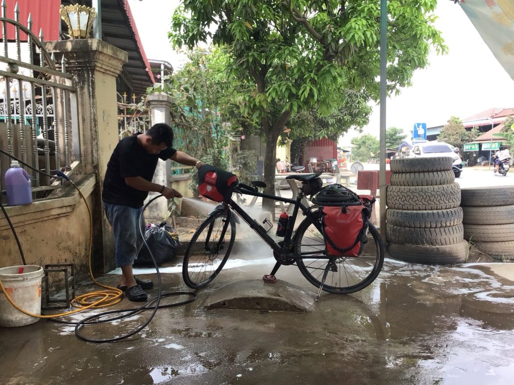 Je me prépare tranquillement avant de quitter cette GuestHouse dans laquelle quelques cambodgien.nes sont hébergé.es. J’ai bien récupéré avant cette dernière matinée à travers la campagne avant d’arriver dans la grande ville. A 6h30, je reprends la route.