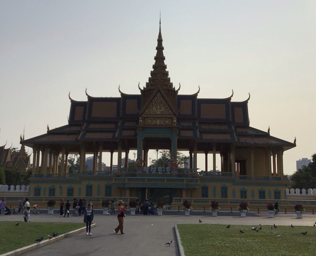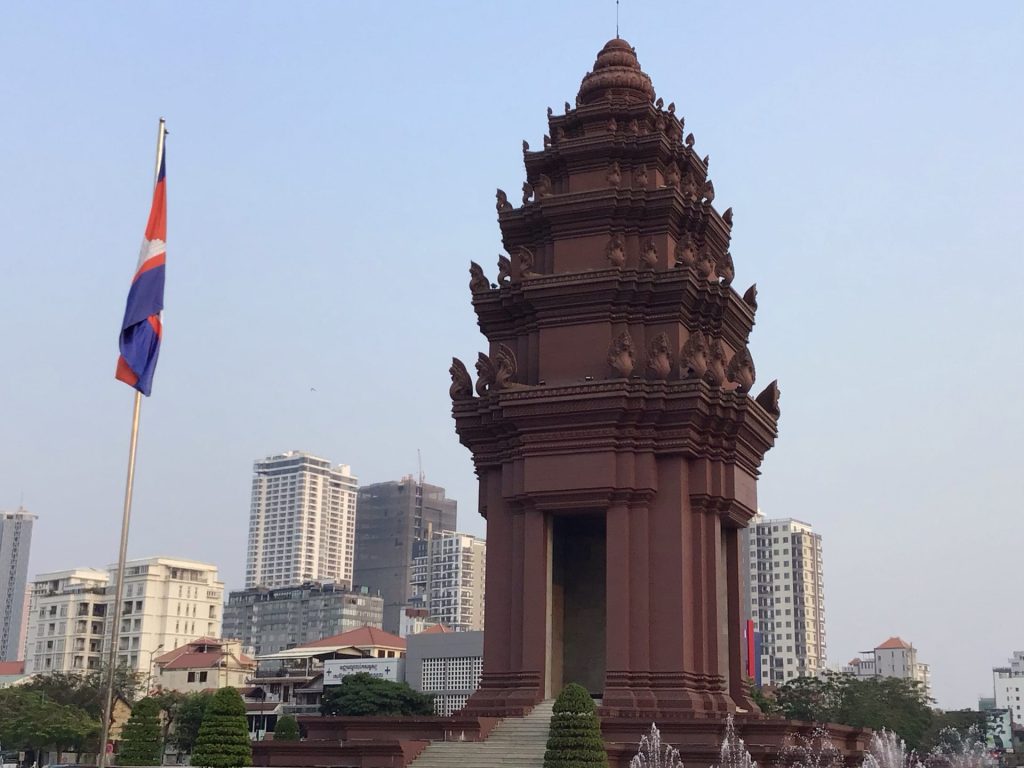 …jusqu’à l’énorme rond-point dont le centre est Independence Monument, construit en 1958 pour commémorer l’indépendance du Cambodge par rapport à la France, signée le 9 novembre 1953 par le roi Norodom Sihanouk, après la fin de la guerre d’Indochine. C’est en 1863 que le Cambodge devient un protectorat français faisant partie de l’Indochine française : Cochinchine (sud Vietnam), Annam (centre Vietnam), Tonkin (nord Vietnam), Laos et Cambodge (plus le territoire chinois de Kouang-Tchéou-Wan pour être tout-à-fait précis).