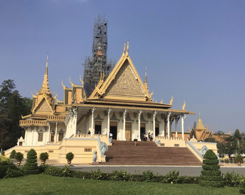 Comme hier, je suis réveillé vers 6h00 du mat’. Il me faut patienter un peu avant de me rendre au Royal Palace qui ouvre ses portes à 8h00. Après avoir bu un café et mangé un gâteau achetés à une marchande ambulante à scooter, je me dirige à pied vers cet endroit. Je suis à peine à 2 kms. Arrivé à nouveau dans les premiers, j’acquitte mon droit d’entrée fixé à 10$. La superficie de ce Palais est immense. Cependant tout n’est pas ouvert au public. Seule la partie sud-est est accessible.