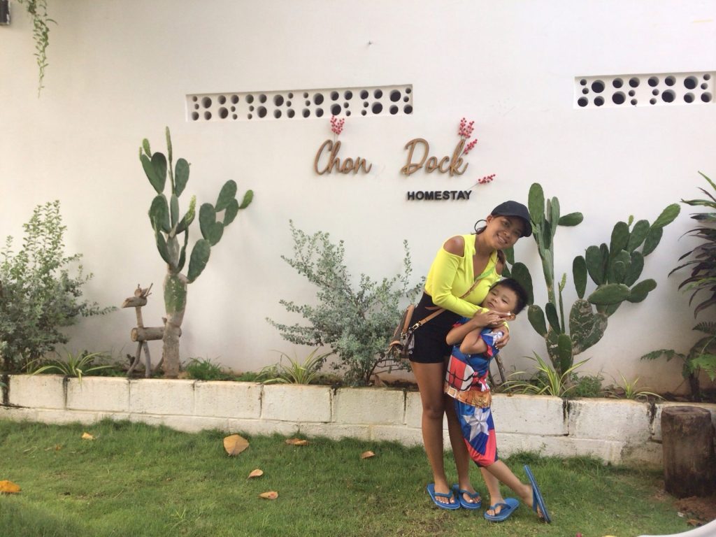Je me prépare sans faire de bruit vu que la jeune proprio et son fils dorment à côté. Mais, avant de partir, je suis surpris de les voir débarquer. Elle tenait absolument à me saluer avec son fils. Trop sympa. Je pense à les photographier.