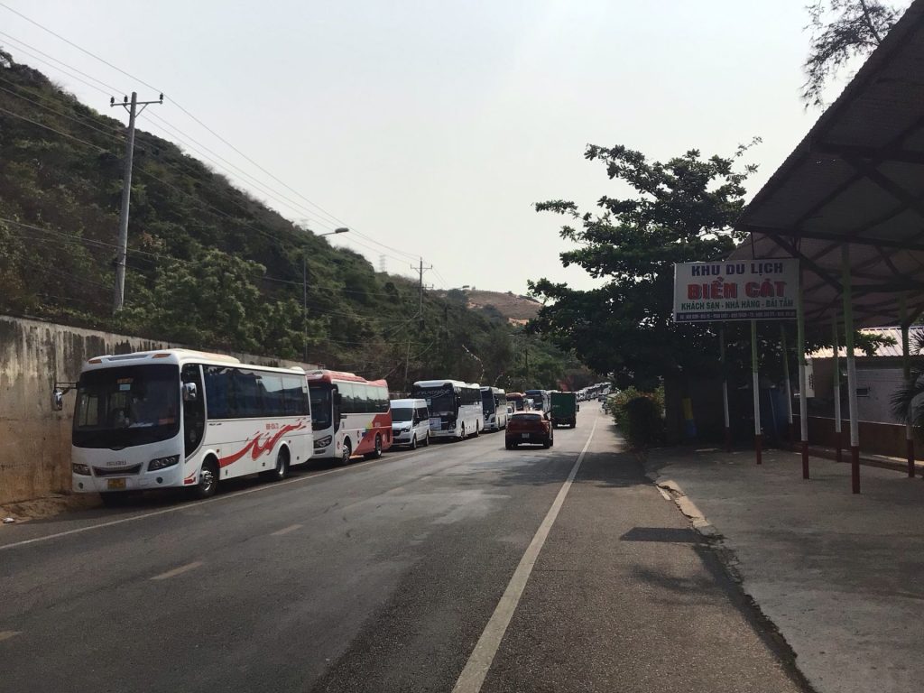 Je traverse cette ville en passant par le cap. L’agitation règne à nouveau d’autant plus qu’il y marché. Je ne m’attarde pas. Trop de monde. Trop de bruit. Trop de trop. Je retrouve ma route 716 qui longe dorénavant la mer. Au bout de cette baie de Mūi Né, je suis surpris de voir autant de bus à l’arrêt le long de la route. De l’autre côté de la chaussée, ce ne sont que restaurants et bars en enfilade. Je ne peux même pas y accéder sans consommer. Je me fais virer à 2 reprises par des vigiles. J’aimerais bien voir la plage.