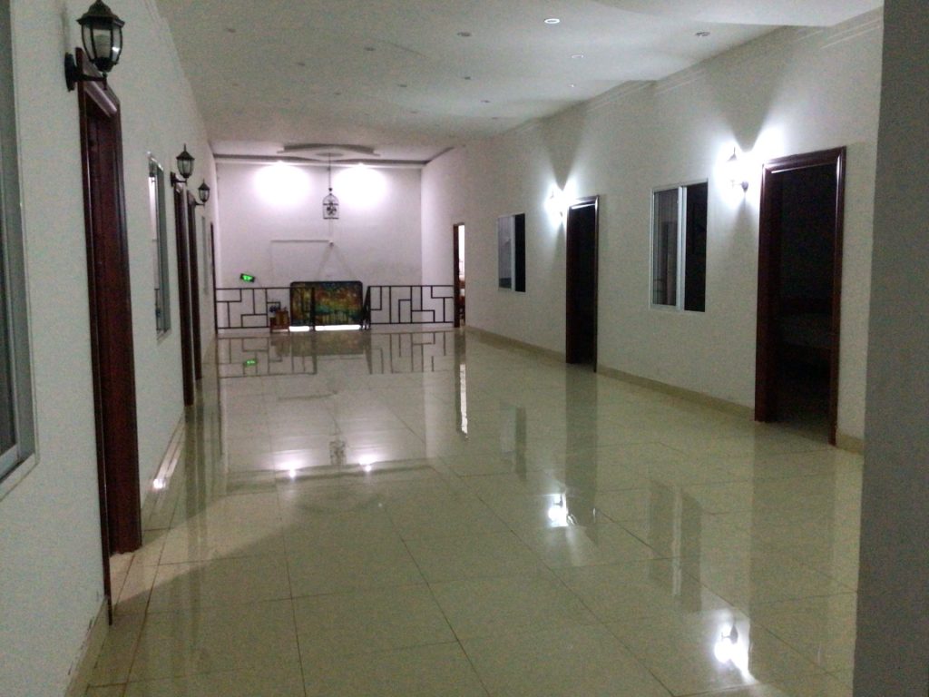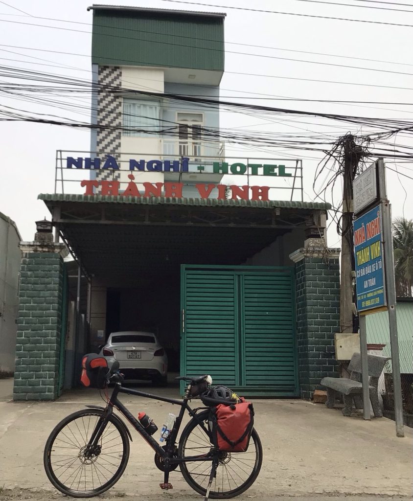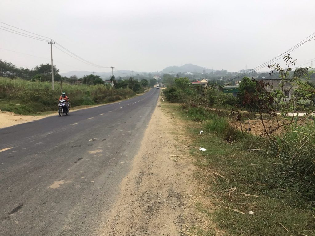 Je rejoins à présent la route principale QL14 (et aussi Asia Highway 17) dans la bourgade de Cu Bao. Je retrouve les coups de klaxon intempestifs. Il est déjà 15h30 et il me reste encore 20 bornes avant d’arriver au premier hôtel repéré à l’entrée de la grande ville de Buôn Ma Thôt sur cette route. Je m’arrête devant un commerce pour y acheter un gâteau et de l’eau. A tout hasard, je montre à la commerçante la photo du départ ce matin avec le mot « Nhà Nghi » (« hôtel » pour ceux qui ne suivent plus). Elle acquiesce. Elle me dit de tourner à gauche sur la QL14 et de filer. Je ne suis plus à quelques hectomètres près. J’y vais. Et je trouve effectivement un hôtel en bord de route. Je m’y arrête. A mon arrivée, la réceptionniste est morte de rire. Au moins, je fais rire. C’est déjà cela. Je lui montre mon traducteur qui lui demande une chambre pour une personne au meilleur prix. 200.000 VND. Vendu. Décidément, c’est le tarif baroudeur. Chambre nickel qui donne sur un couloir russe. Comme quoi, tous les hôtels ne sont pas étroits !
